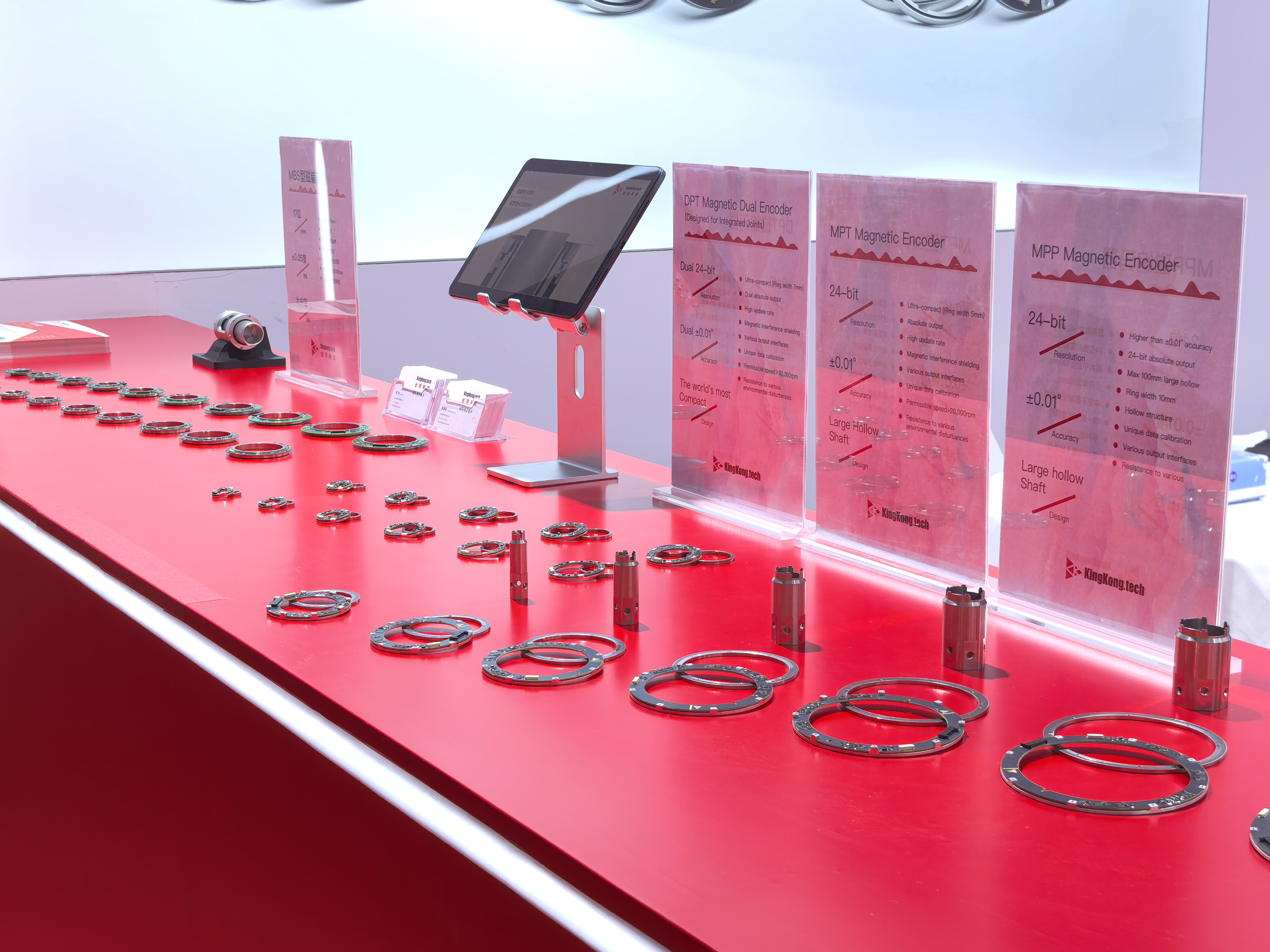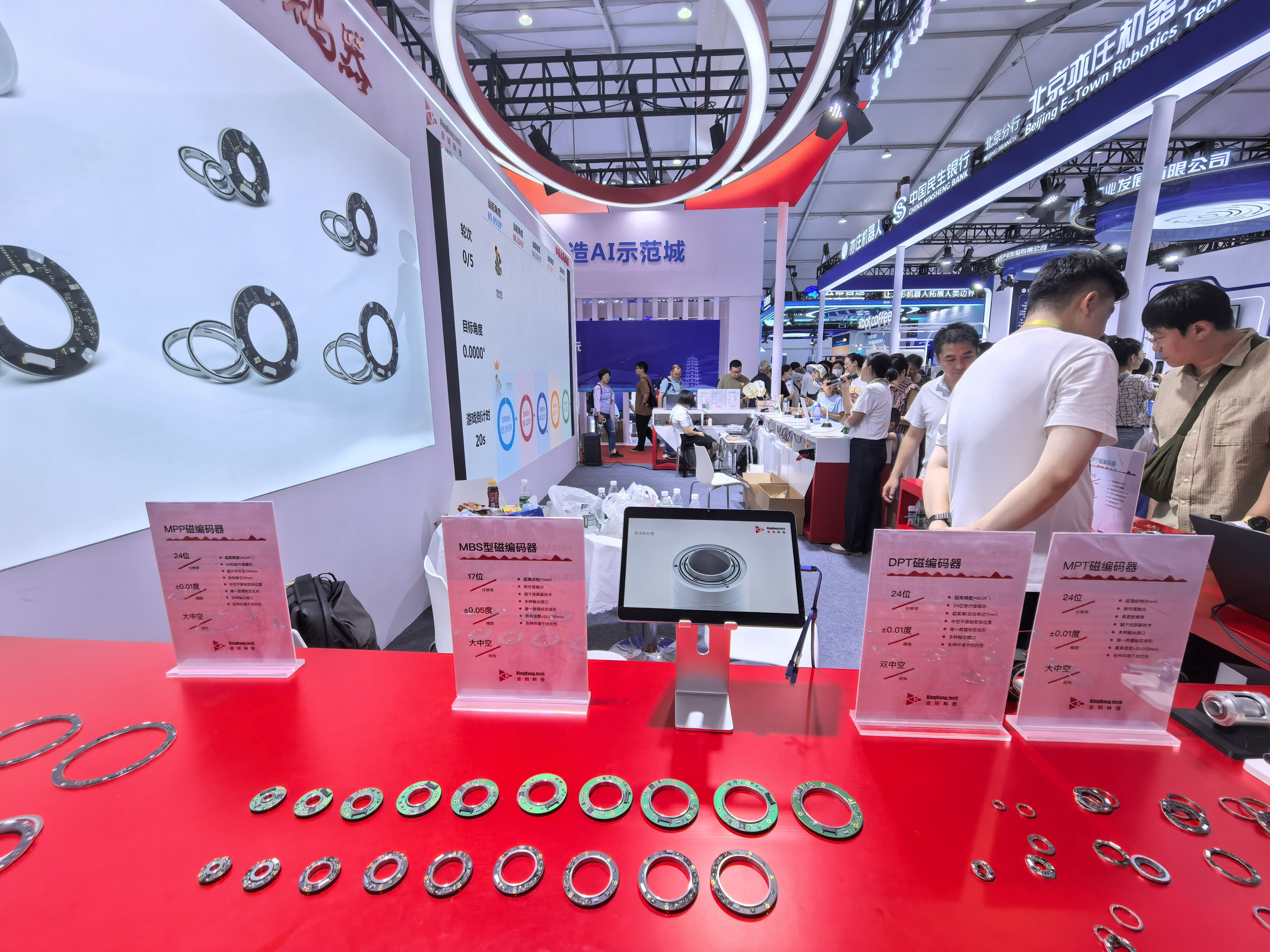 This year, we once again brought the most popular encoder mini-game from last year to the exhibition. From the very first day, the booth was crowded with visitors eager to play. Children and adults alike concentrated on rotating their props, trying to move the 24-bit high-resolution encoder precisely to the target angle. Some children even managed a 360° rotation with extreme accuracy, down to just 0.0001°. During the competition, participants experienced firsthand how even the tiniest mechanical angle drifts measured by the magnetic encoder could lead to significant value changes. While having fun, everyone also felt the charm of physics, mathematics, and electronic science. They recognized KingKong Technology’s strong technical capabilities as a rising robotics encoder company。KingKong Technology hopes to inspire more young people to devote themselves to China’s wave of scientific and technological innovation, cheering for national progress and contributing passionately to the development of the robotics industry.